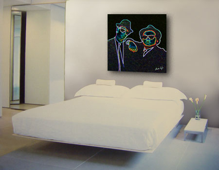 Das Bild der Blues Brothers ist ein hochwertiger Kunstdruck auf echter Leinwand, aufgespannt auf einen massiven Holz-Keilrahmen. Sie können es in unterschiedlichen Größen und als günstiges Set mit Bilderrahmen bestellen.